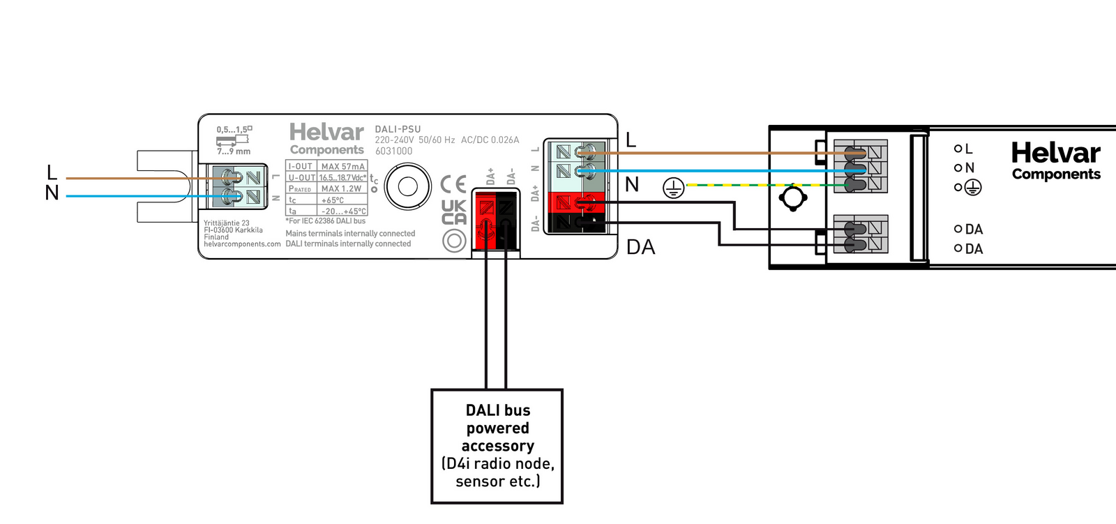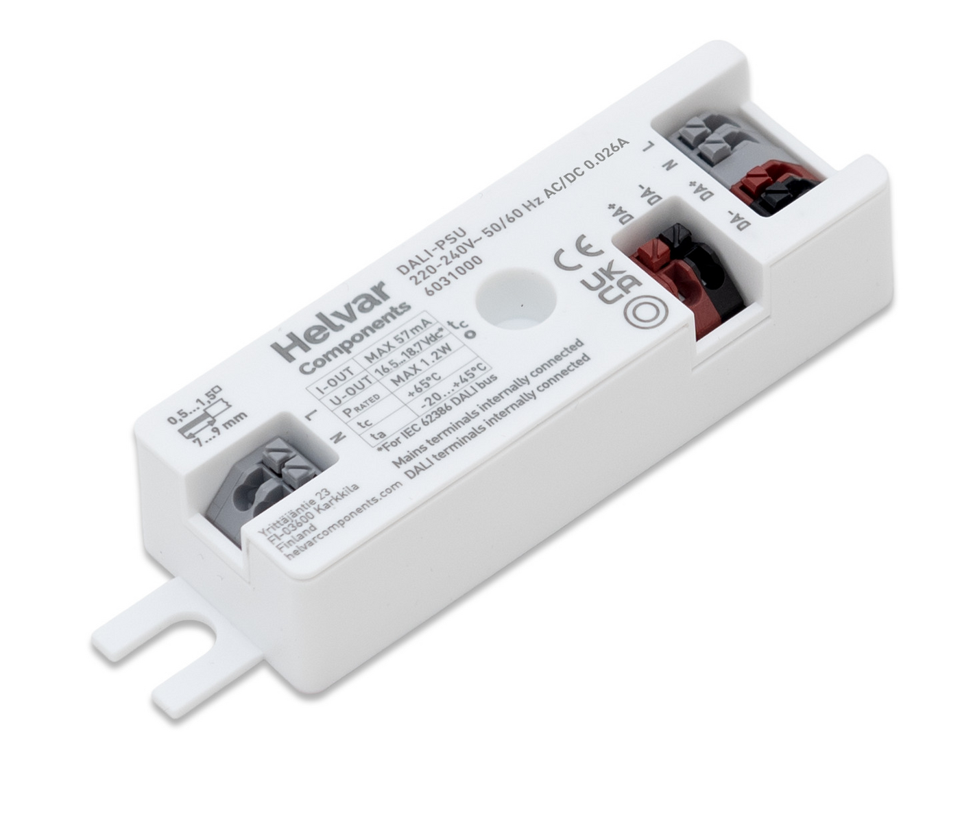 DALI-PSU is a slim and convenient DALI bus power supply unit to be used built in inside e.g. luminaires with DALI-powered accessories such as D4i-compatible wireless nodes and sensors.