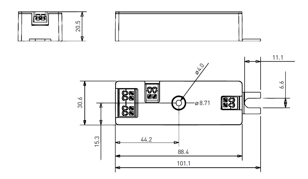 • Dimensions: 101.1 x 30.6 x 20.5 mm