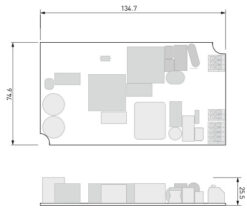 - Dimensions: 134,7 x 25,5 x 74,6 mm