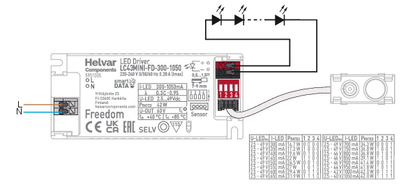• 300 mA – 1050 mA adjustable current output