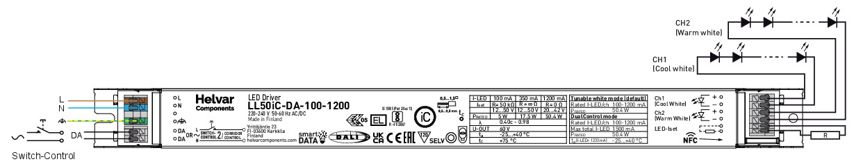 50 W 2-Channel Tunable White (DT8) / DualControl (DT6) DALI-2 dimmable LED driver